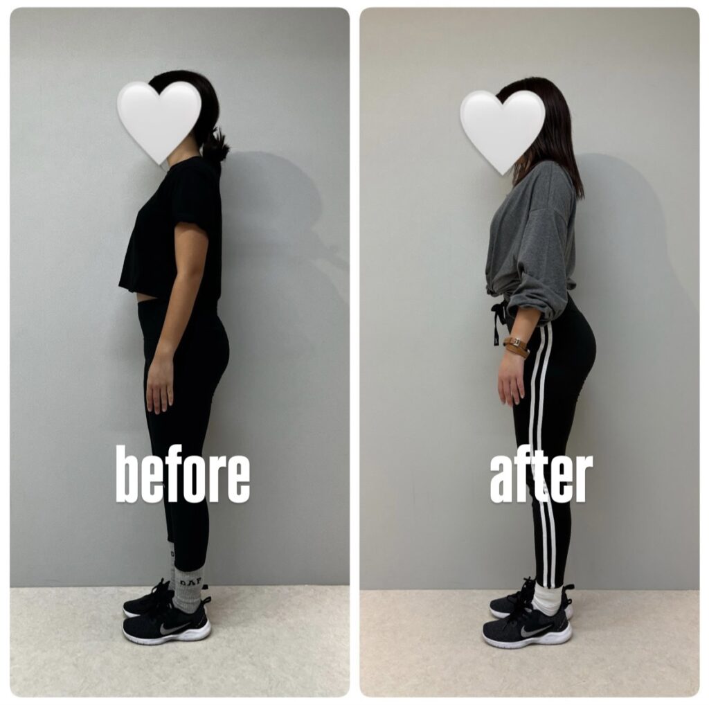 姿勢としては反り腰が強く姿勢が悪いことも気になっていたようですが、トレーニングで腹圧のかけ方や普段の生活でも気をつけるようになったことでお腹周りもすっきりしました。