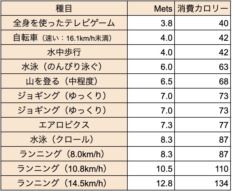 動きが多く心拍数が上がりやすいため、1時間あたり約400〜600kcalを消費。楽しみながら続けられるため、継続しやすいのも大きな魅力です。